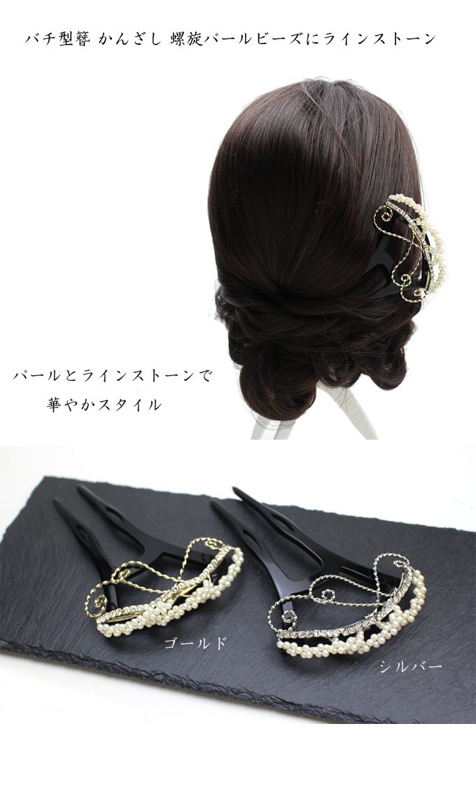 【あす楽_土曜営業】【あす楽_日曜営業】【あす楽_年中無休】【コンビニ受取対応商品】【楽天BOX受取対象商品】 イベント&特集バチ型簪 かんざし 螺旋パールビーズにラインストーン 商品説明 黒地のバチ型に小粒のパールビーズとラインストーンあしらった華やかな簪です。