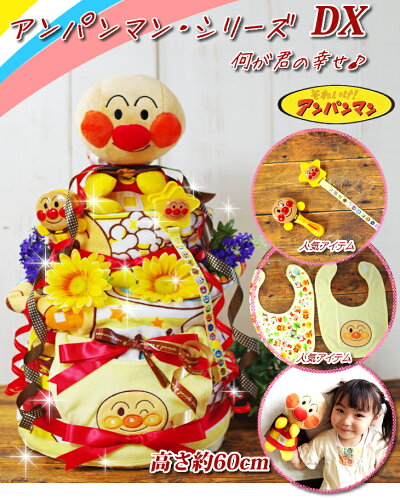 お急ぎ対応可★おむつケーキ アンパンマン 4段 DX バスタオル ぬいぐるみ パペット 出産祝い 男の子 女の子 名入れ 送料無料 おむつケーキ ★ ギフト 人気 ダイパーケーキ ★ アンパンマン おむつケーキ 出産祝い 【あす楽対応】
