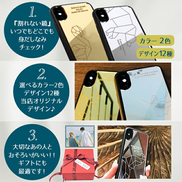 iPhone 11ProMax iPhone XS Max iPhone XR iPhone8 ミラー オリガミケース[L]割れない鏡iphone iPhone8Plus iPhone7Plus iPhone6s iPhoneSE 【送料無料】 折り紙 origami case